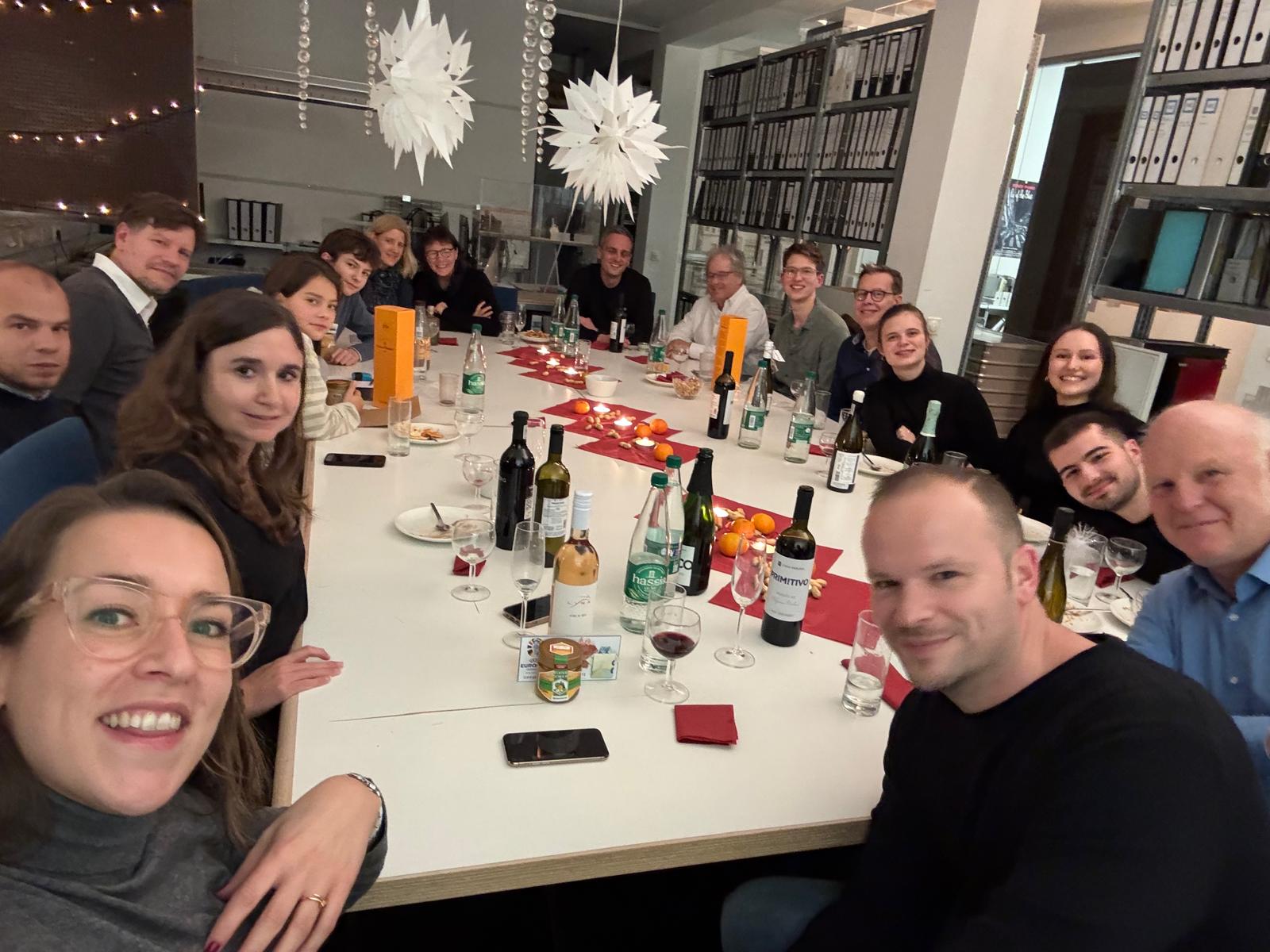 Jahresabschluss mit fröhlicher Weihnachtsfeier im Büro.